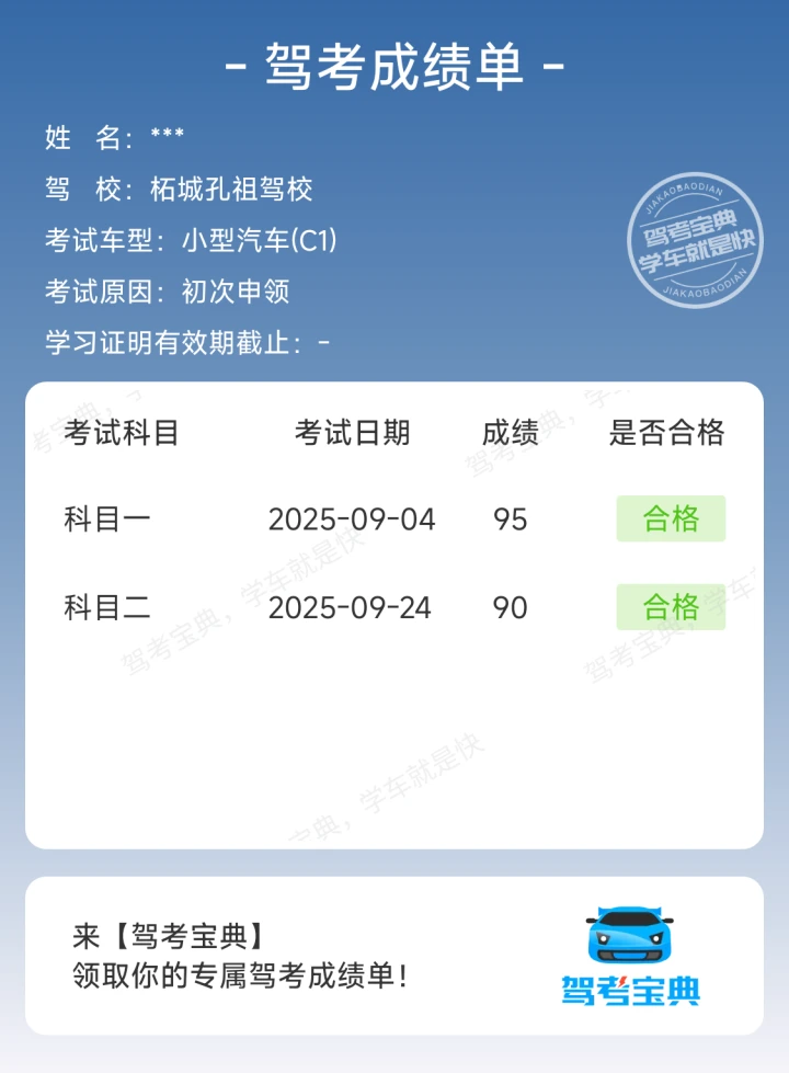 科二过考啦!始终要相信自己~学车就像修炼一样,一天比一天奈斯!