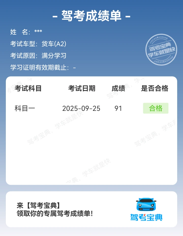 当前位置:首页>驾考圈>满分考试顺利通关,成功拿回驾照