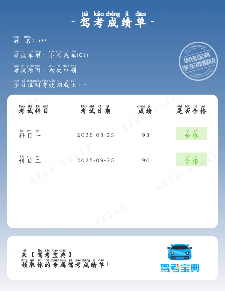 谢典,科二一次顺利通过!好运带给你们,宝子们,冲鸭!!