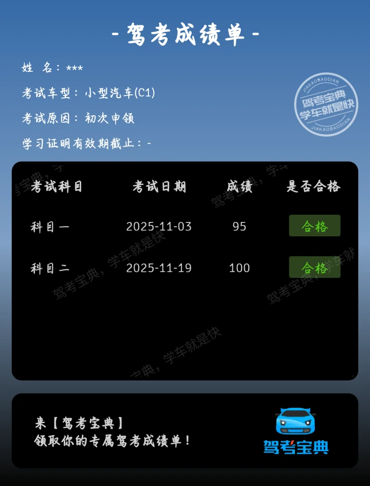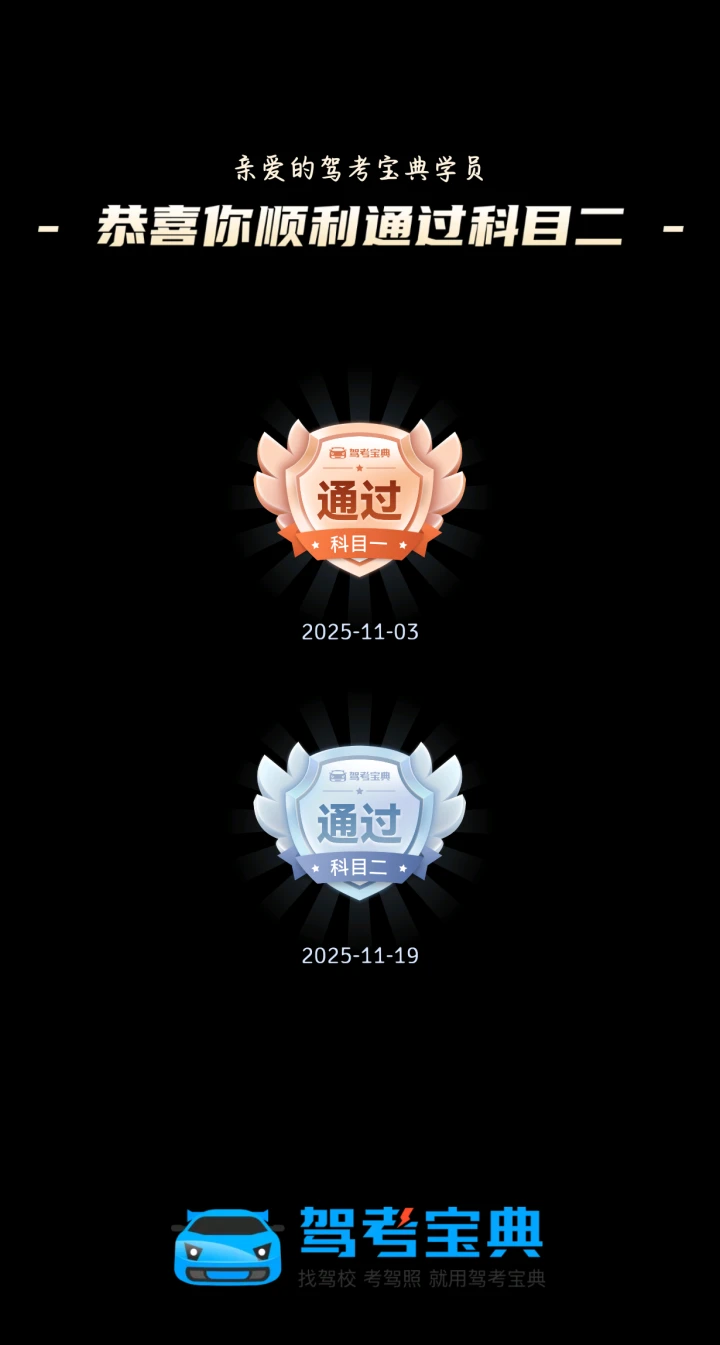 科二过考啦!始终要相信自己~学车就像修炼一样,一天比一天奈斯!