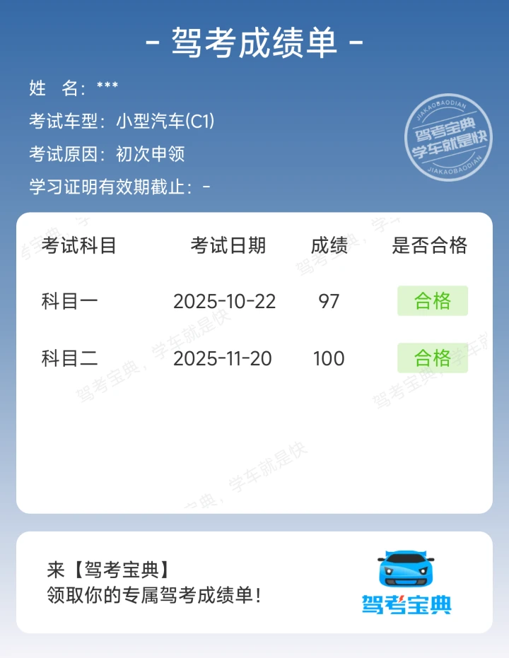 科二过考啦!始终要相信自己~学车就像修炼一样,一天比一天奈斯!