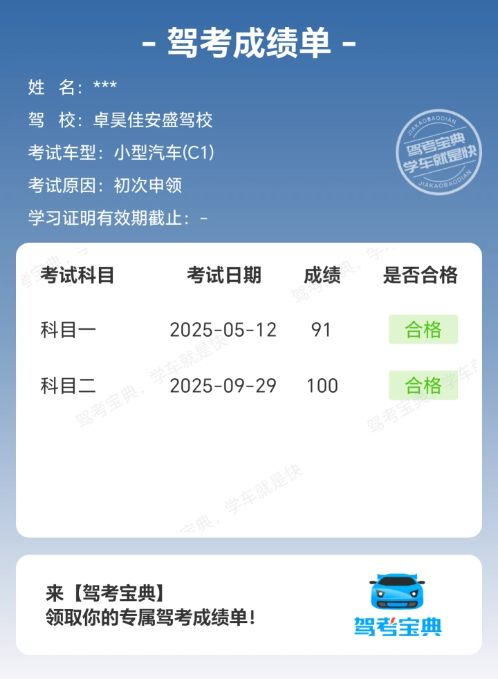 科二过考啦!始终要相信自己~学车就像修炼一样,一天比一天奈斯!