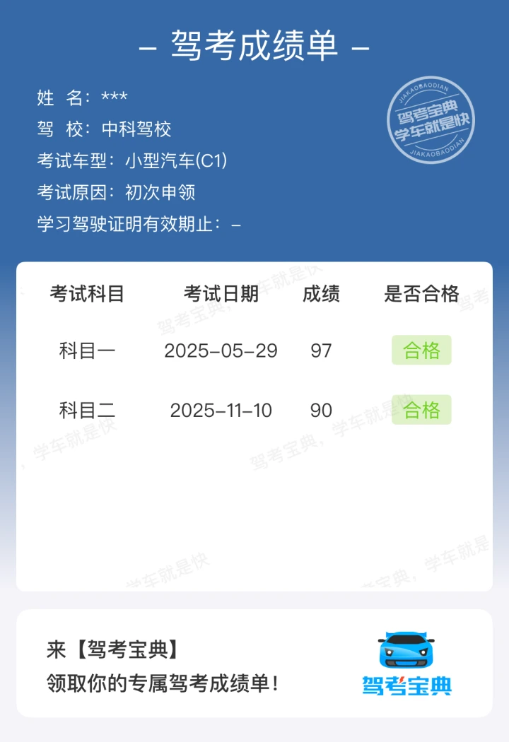 科二过考啦!始终要相信自己~学车就像修炼一样,一天比一天奈斯!